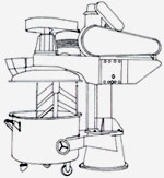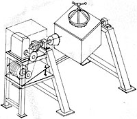 Incorporates a jackable tumbling device and a separate, removable container. Gentle tumbling motion minimises degradation of the products and batch integrity Containers can be conical bottom, cyclindrical, for size upto 500 lts and square with bottom cones for higher size.