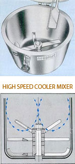 HIGH SPEED COOLING MIXER which is placed in line with HEATER MIXER receive the hot mixer there from HEATER MIXER which cools it down at maximum temperature where it can be stored safely.