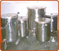 This unit is made out of stainless steel sheets (304 Quality) with weldings done by Argon Arc process. The tanks are polished and buffed from inside and outside to give mirror finish and are supplied complete with lid l outlet valve with nose nipple M.S stand with castor wheels etc.